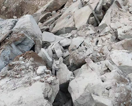 施工現(xiàn)場巖石屬石英砂巖,抗磨抗壓抗風(fēng)化.石英砂巖硬度為85度,既硬又糯,炮機在此砂巖上連續(xù)打十多分鐘也只能形成一道白印,開采難度極大,先后請了四個團隊的鉆孔機都認為其操作難而無法進行。這種硬度人工和機械都無法開采,而爆破法的震感和噪聲又比較大,因此采用二氧化碳致裂這一特殊新工藝進行。